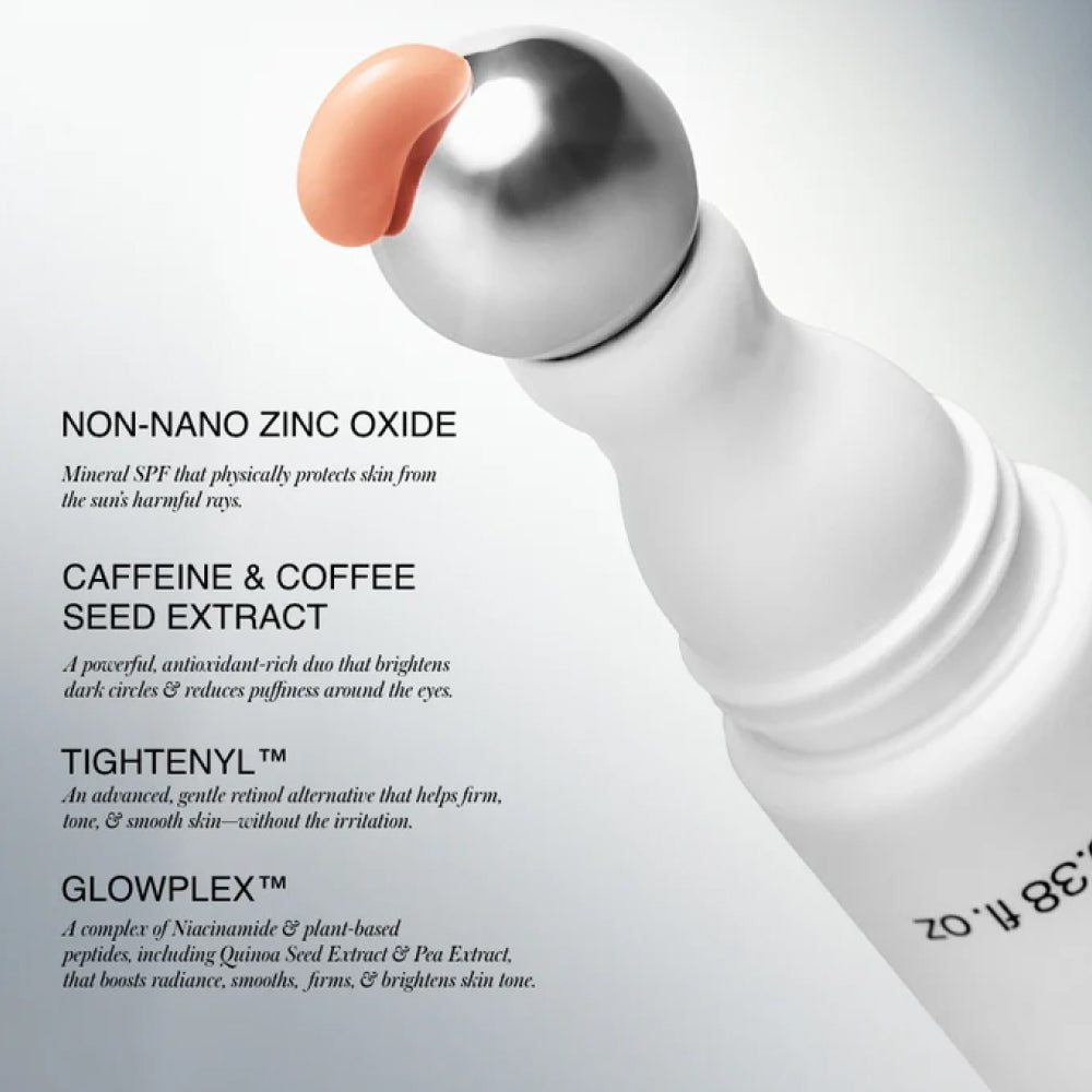 water/aqua/eau / zinc oxide / caprylic/capric triglyceride / shea butter ethyl esters / glycerin / coconut alkanes / polyglyceryl-3 polyricinoleate / silica / *simmondsia chinensis (jojoba) seed oil / coco-caprylate/caprate / sodium chloride / stearalkonium hectorite / mica / polyglyceryl-4 diisostearate/polyhydroxystearate/sebacate / polyglyceryl-3 diisostearate / bisabolol / phenylpropanol / lecithin / propanediol / allantoin / caprylyl glycol / *terminalia ferdinandiana seed oil / disodium acetyl glucosamine phosphate / sodium glucuronate / tocopherol (non-gmo) / tetrasodium glutamate diacetate / niacinamide / magnesium sulfate / coffea arabica (coffee) seed extract / *calendula officinalis (marigold) flower extract / pisum sativum (pea) seed extract / *equisetum arvense (horsetail) leaf extract / *hypericum perforatum (st. john’s wort) flower extract / *curcuma longa (turmeric) root powder / *hemidesmus indicus (country sarsaparilla) root powder / *withania somnifera (ashwagandha) root extract / *glycyrrhiza glabra (licorice) root / olea europaea (olive) leaf / *aloe barbadensis leaf juice / benzyl alcohol / sodium hydroxide / chenopodium quinoa seed extract / potassium sorbate / sodium benzoate / caffeine / titanium dioxide (ci 77891) / iron oxides (ci 77491 / ci 77492 / ci 77499). * certified organic/certifié biologique• Gebruik minstens 20 minuten vóór blootstelling aan de zon voor optimale SPF-bescherming.